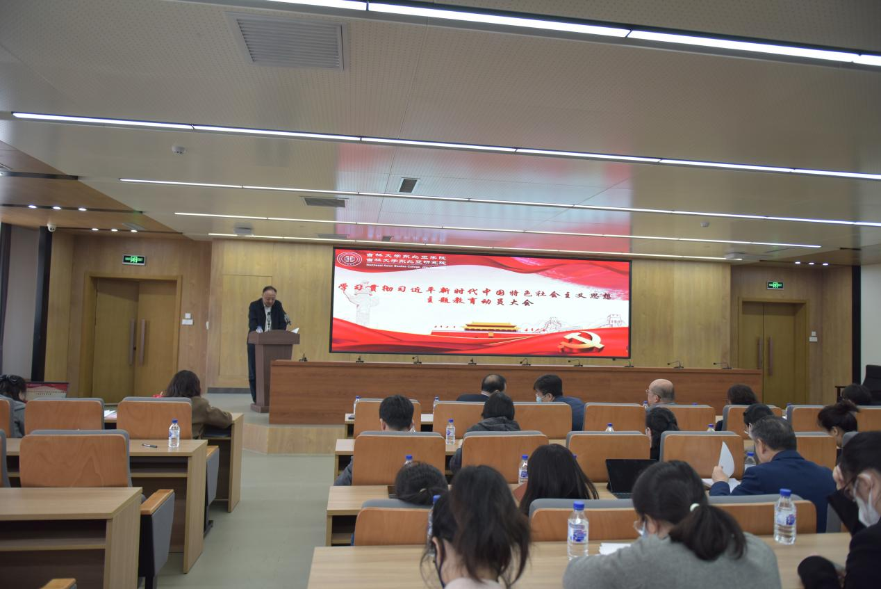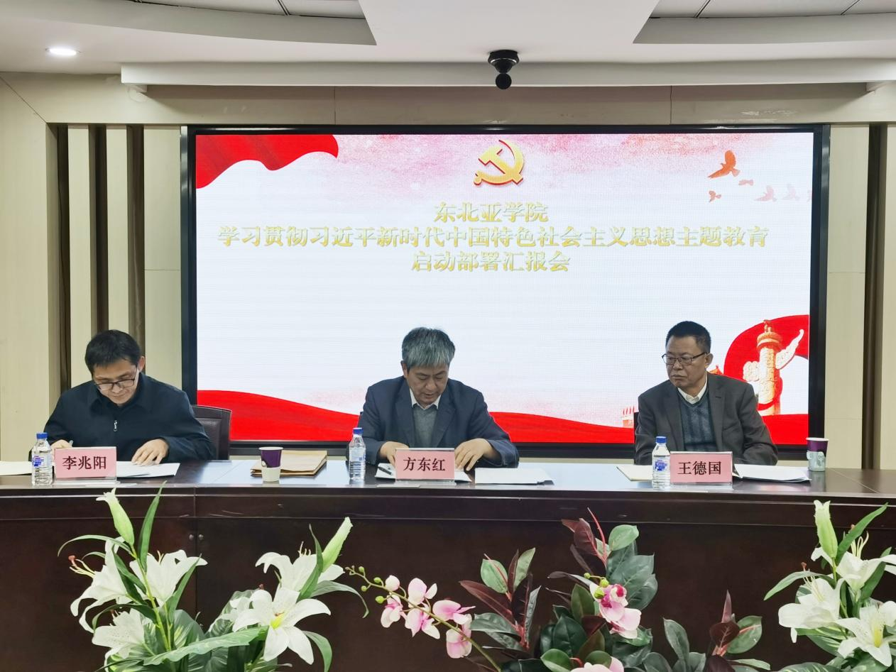 2023年4月14日,東北亞學(xué)院召開學(xué)習(xí)貫徹習(xí)近平新時代中國特色社會主義思想主題教育動員部署會。對東北亞學(xué)院深入開展主題教育進行動員部署。東北亞學(xué)院黨委書記、東北亞學(xué)院主題教育領(lǐng)導(dǎo)小組組長邱松主持會議并作動員部署講話。院長、東北亞學(xué)院主題教育領(lǐng)導(dǎo)小組副組長吳昊出席會議。4月21日,召開了學(xué)院主題教育啟動工作匯報會,學(xué)校主題教育第十巡回指導(dǎo)組成員到會,組長方東紅作指導(dǎo)講話。