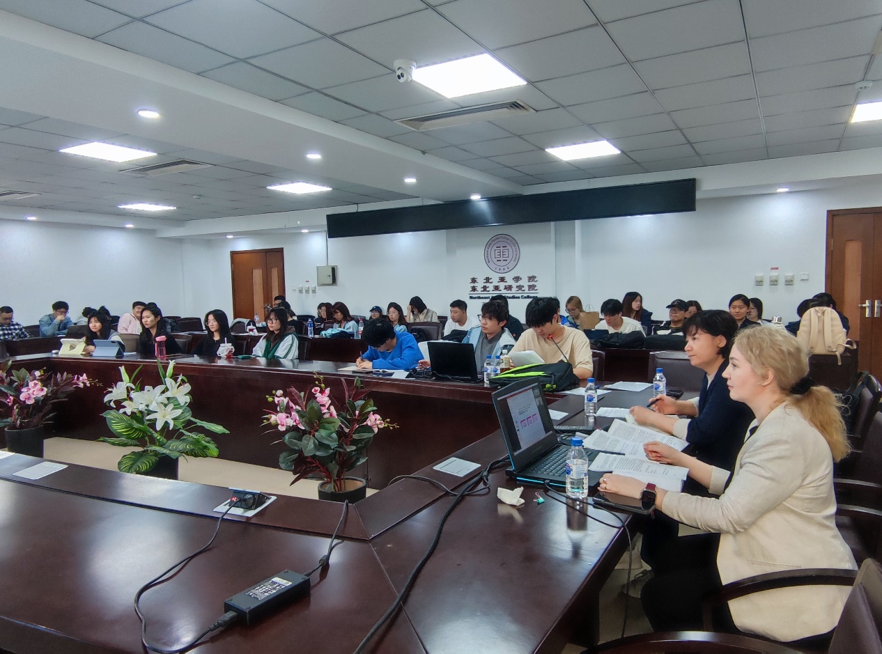 講座由東北亞學(xué)院娜塔麗雅·古爾巴諾娃老師主持。經(jīng)濟系主任李天籽教授、2021級全體本科生和部分研究生共40余人參與此次講座。2021級本科生邱穎、祝成山擔任講座翻譯。
