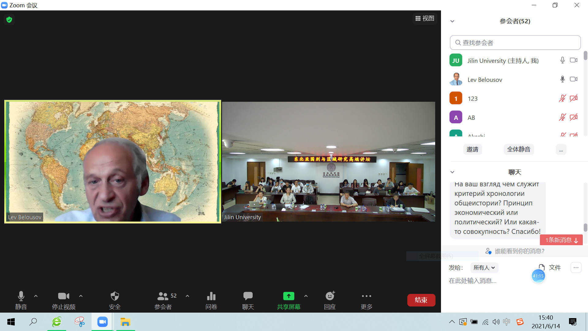 活動(dòng)尾聲之時(shí),張廣翔教授表示,別洛烏索夫院士的講座及其系列研究?jī)r(jià)值極高,為吉林大學(xué)俄國(guó)史團(tuán)隊(duì)廓清研究思路、發(fā)掘新的研究視角助益甚多。張廣翔教授轉(zhuǎn)達(dá)了吳昊院長(zhǎng)的誠(chéng)摯邀請(qǐng),希望別洛烏索夫教授及其團(tuán)隊(duì)能在疫情之后出訪吉林大學(xué),再續(xù)兩校情誼,共譜歷史華章。