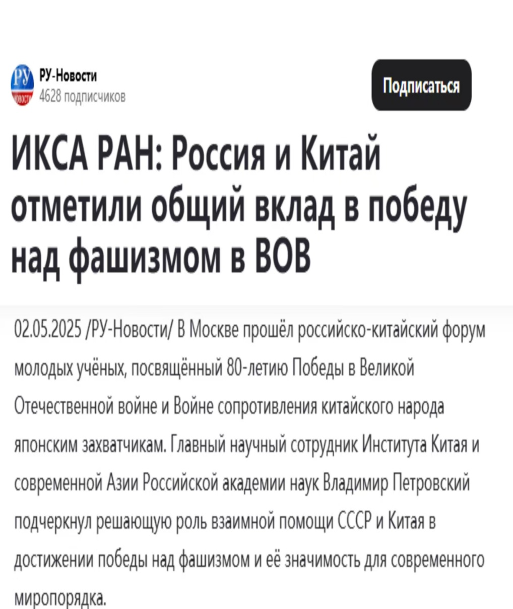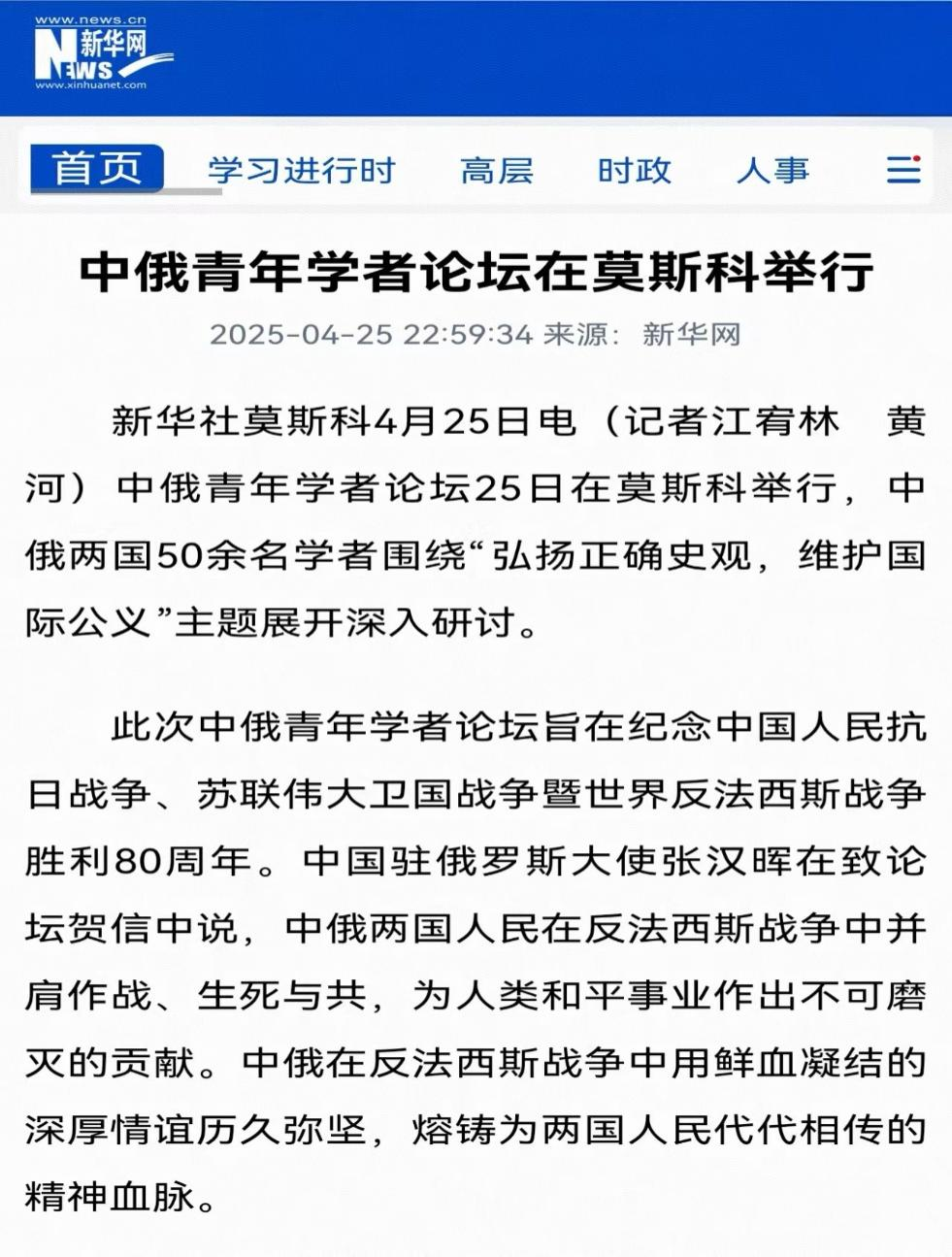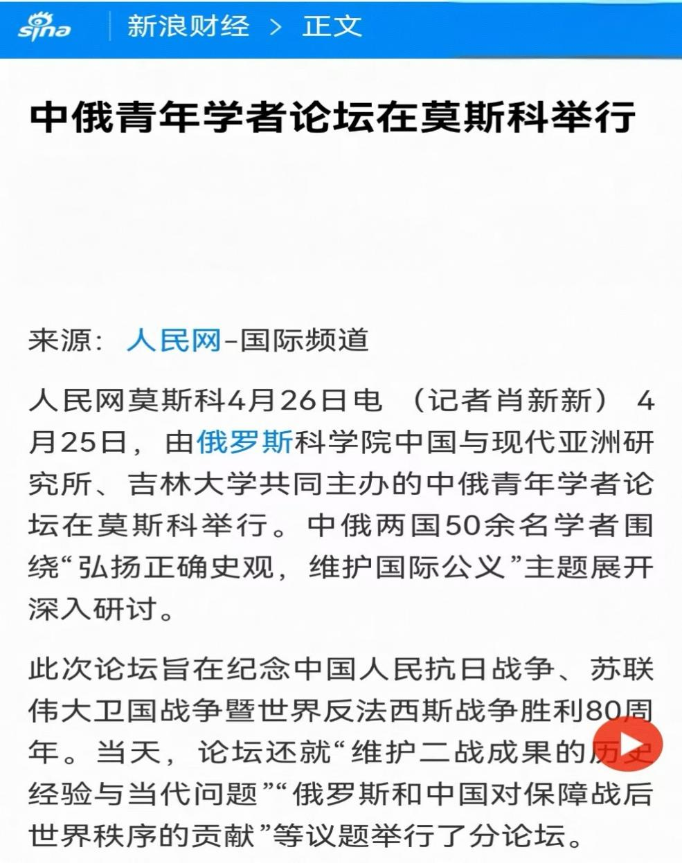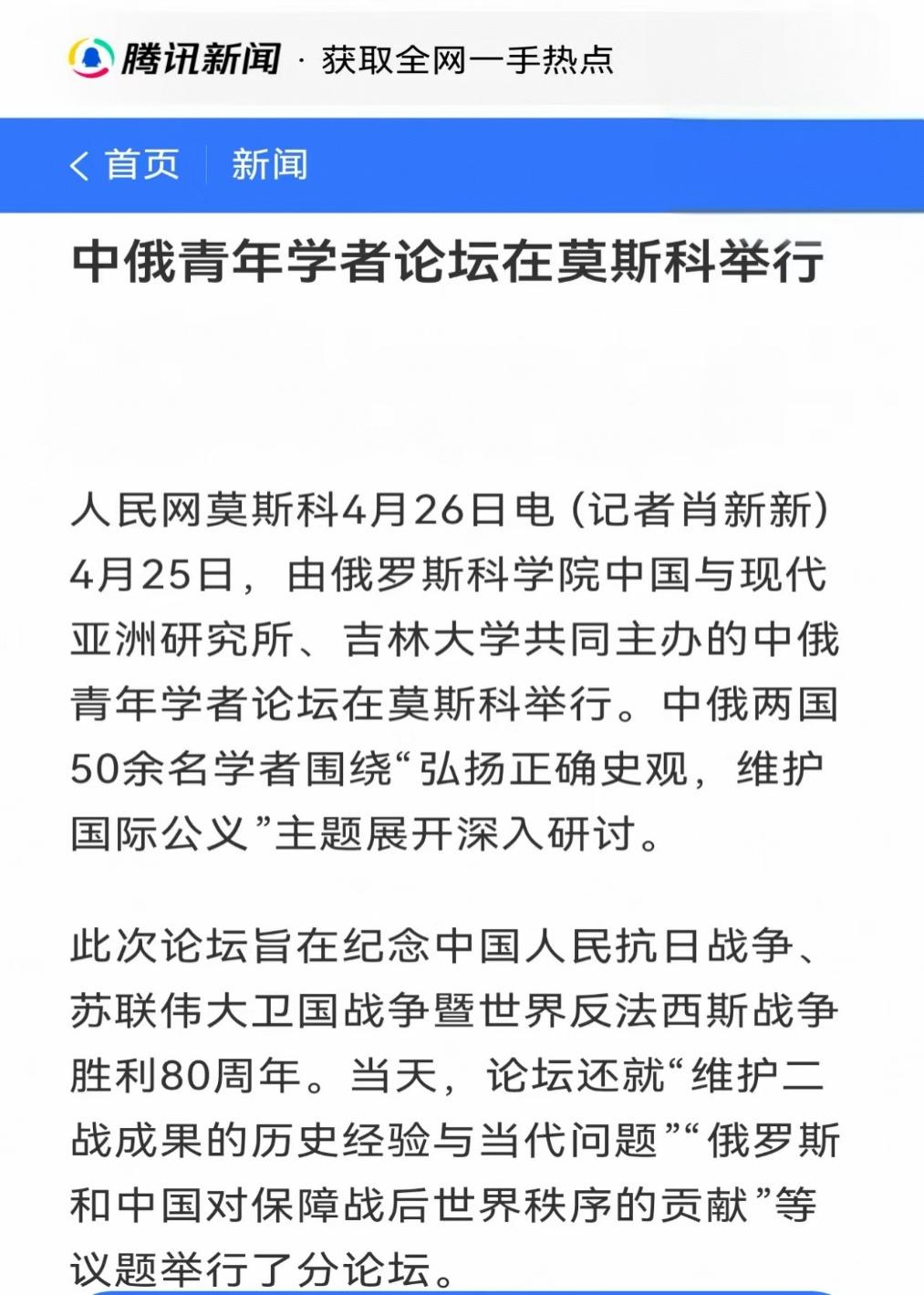 2025年4月25日,由俄羅斯科學(xué)院中國與現(xiàn)代亞洲研究所、吉林大學(xué)東北與東北亞研究院、吉林大學(xué)東北亞研究院、吉林大學(xué)東北亞研究中心、吉林大學(xué)社會科學(xué)研究院聯(lián)合舉辦的“紀(jì)念中國人民抗日戰(zhàn)爭、蘇聯(lián)偉大衛(wèi)國戰(zhàn)爭暨世界反法西斯戰(zhàn)爭勝利80周年中俄青年論壇”在莫斯科成功舉辦。此次會議是踐行中俄兩國元首關(guān)于共慶反法西斯戰(zhàn)爭勝利80周年的重要共識、推動中俄人文與青年交流的重要學(xué)術(shù)活動。此次論壇獲得了中俄兩國外交部門的高度關(guān)注和支持。中華人民共和國駐俄羅斯聯(lián)邦特命全權(quán)大使張漢暉、俄羅斯聯(lián)邦外交部副部長安德烈·魯?shù)强品謩e向論壇致賀信