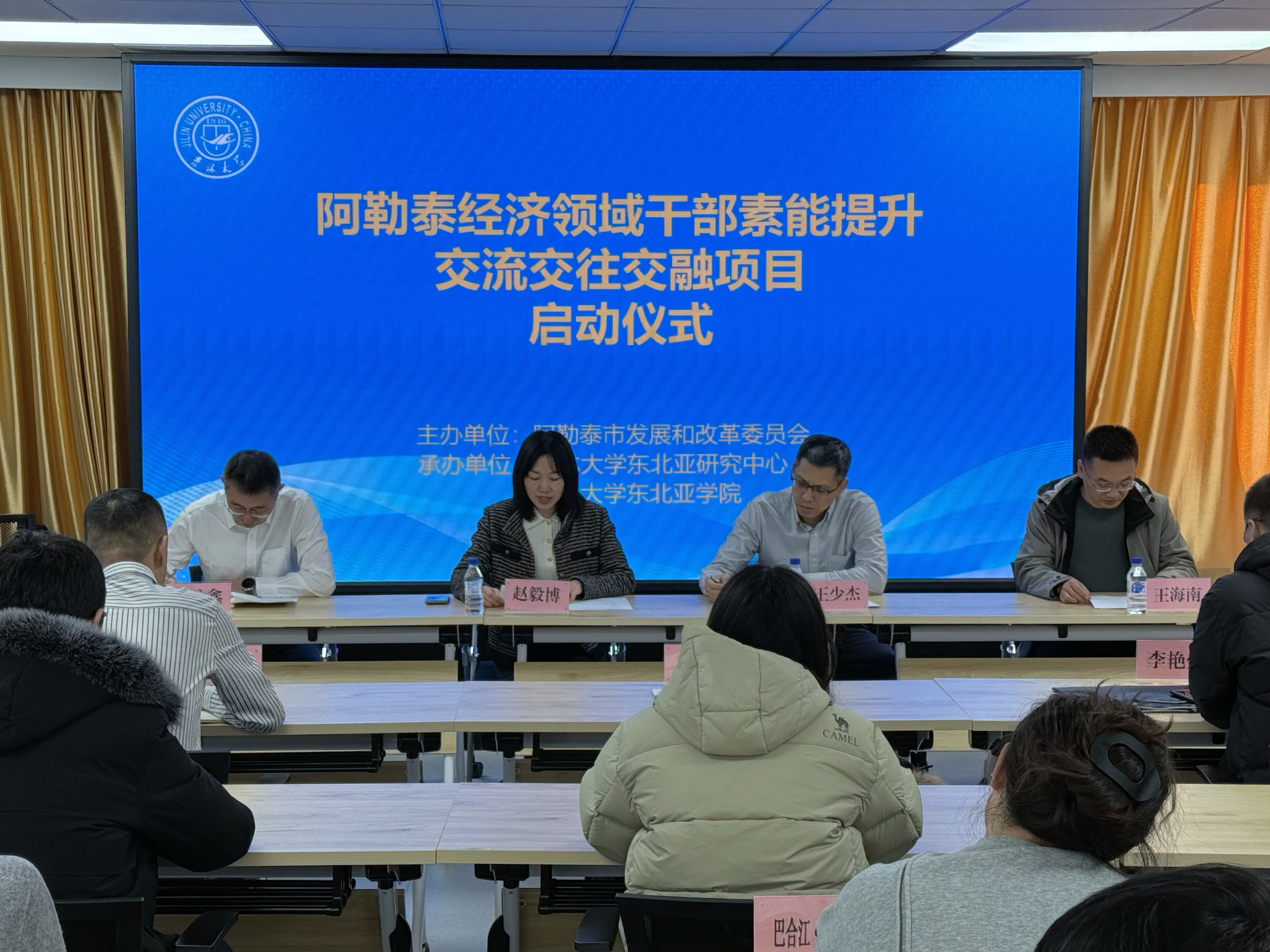 2025年12月3日,由吉林大學(xué)東北亞研究中心、東北亞學(xué)院舉辦的“阿勒泰經(jīng)濟領(lǐng)域干部素能提升交流交往交融項目”培訓(xùn)班開班儀式在東榮大廈隆重舉行。阿勒泰地區(qū)發(fā)展和改革委員會副主任王少杰、阿勒泰地區(qū)財政局副局長劉詠鑫,吉林大學(xué)東北亞學(xué)院黨委書記趙毅博出席儀式,開班儀式由阿勒泰市發(fā)展和改革委員會副主任王海南主持。