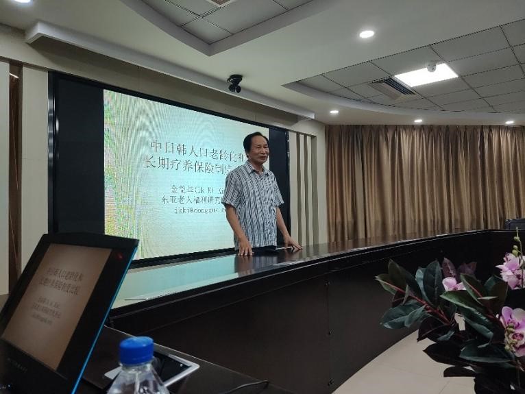 應吉林大學東北亞研究中心、東北亞學院、東北亞研究院和國際文化交流學術聯(lián)盟東北亞區(qū)域專門委員會的邀請,韓國東亞老齡福祉研究所所長、韓國東國大學名譽教授金益基教授于2024年6月6日和13日先后舉行了題為“日本和韓國的低生育與老齡化:對中國計劃生育政策帶來的啟示”和“中日韓人口老齡化和長期療養(yǎng)保險制度比較”的線下學術講座。講座由吉林大學東北亞學院副院長王彥軍副教授主持,東北亞學院侯建明教授、李輝教授、玄春姬副教授、哲學社會學院祁靜副教授和部分本科生、研究生參加了講座。