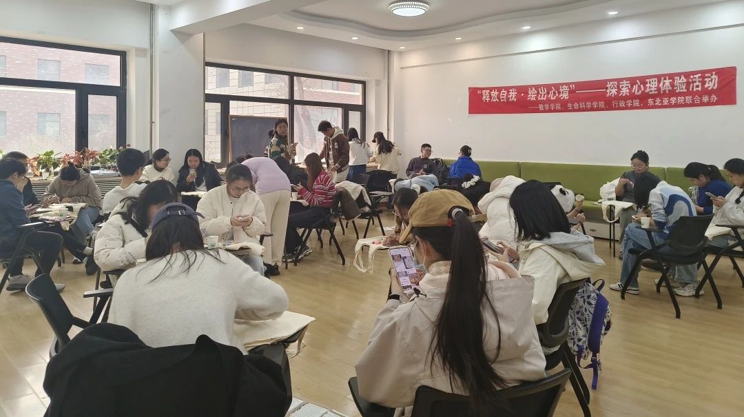 11月16日下午,東北亞學(xué)院、生命科學(xué)學(xué)院、數(shù)學(xué)學(xué)院及行政學(xué)院在吉林大學(xué)學(xué)生心理健康指導(dǎo)中心指導(dǎo)下,于敬信樓A101聯(lián)合開(kāi)展了“釋放自我·繪出心境”心靈探索體驗(yàn)活動(dòng)。本次活動(dòng)不僅是一次藝術(shù)創(chuàng)作機(jī)會(huì),更是一次深刻的心靈之旅,旨在通過(guò)手繪這一獨(dú)特藝術(shù)形式,鼓勵(lì)學(xué)生們探索自己的內(nèi)心世界,勇敢表達(dá)個(gè)人的情感與夢(mèng)想。