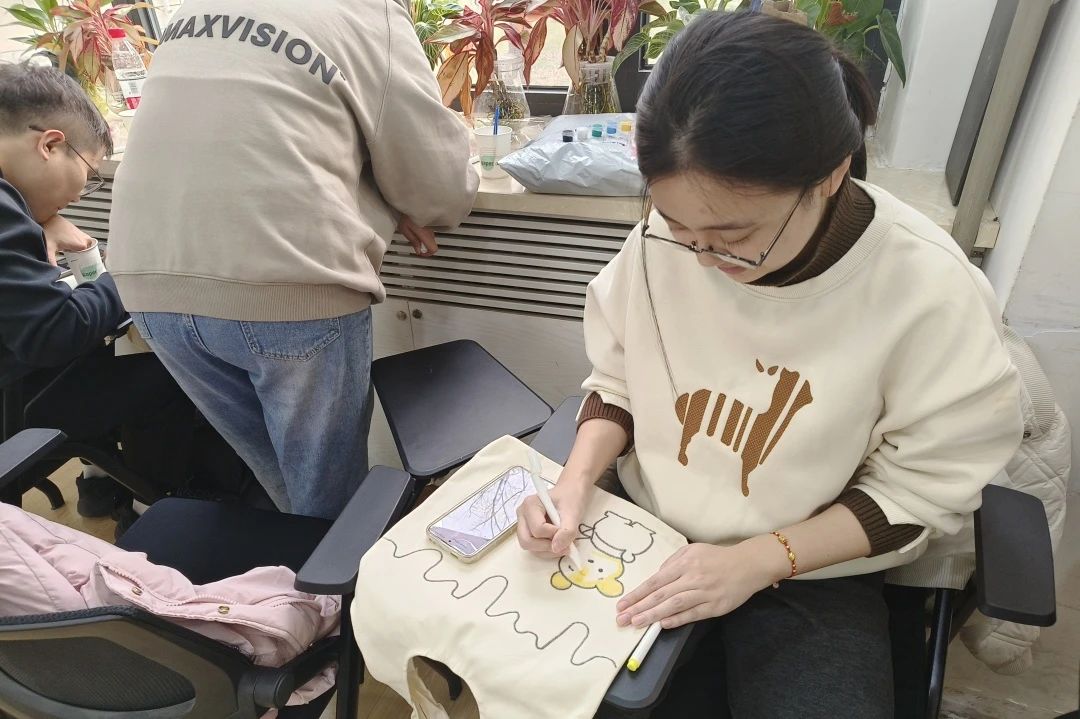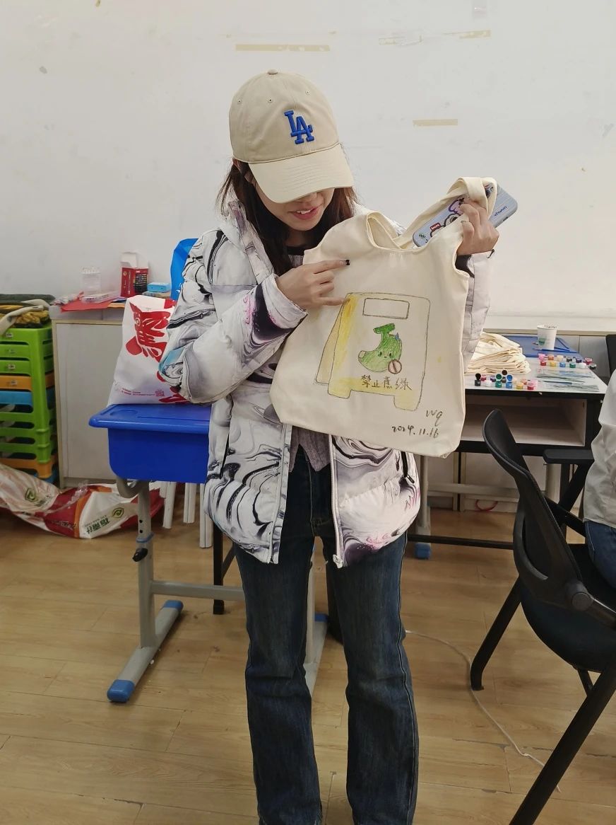 活動(dòng)現(xiàn)場(chǎng),學(xué)生們手持畫筆,在空白的帆布包上揮灑著自己的創(chuàng)意與想象。從簡(jiǎn)單的線條到復(fù)雜的圖案,從鮮艷的色彩到內(nèi)斂的色調(diào),每一件作品都是創(chuàng)作者內(nèi)心世界的映射,展現(xiàn)了他們對(duì)生活的感悟與思考。通過(guò)這種方式引導(dǎo)參與者釋放日常學(xué)習(xí)和生活中的壓力、增強(qiáng)自我認(rèn)知,培養(yǎng)獨(dú)立思考和創(chuàng)造的能力。