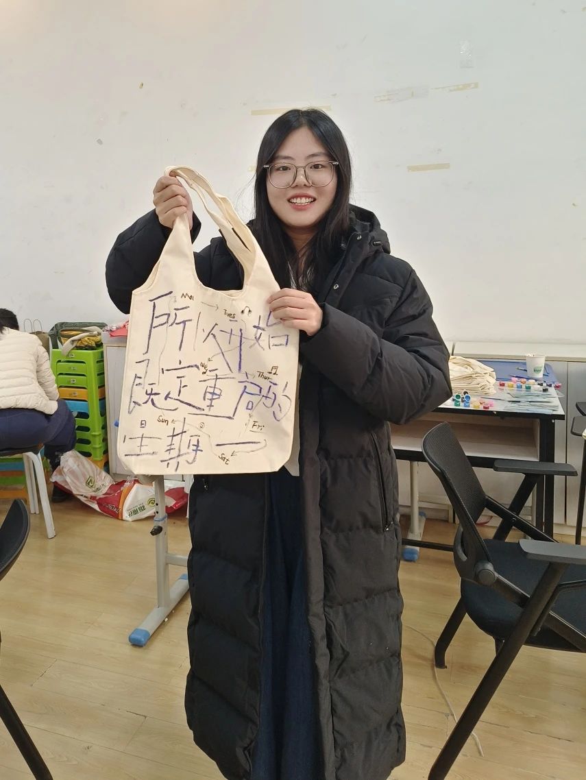 繪畫完畢,同學(xué)們熱情地分享展示了自己的作品,積極向大家介紹自己的創(chuàng)作理念和背后的故事,并獲得了精美的書簽作為獎(jiǎng)勵(lì)。本次活動(dòng)每位同學(xué)都親手繪制了帆布包,作為探索自我、表達(dá)情感過(guò)程中的記錄,承載了參與者對(duì)未來(lái)的憧憬與希望。