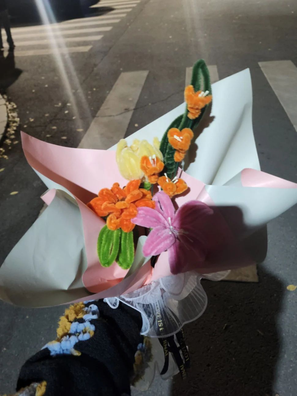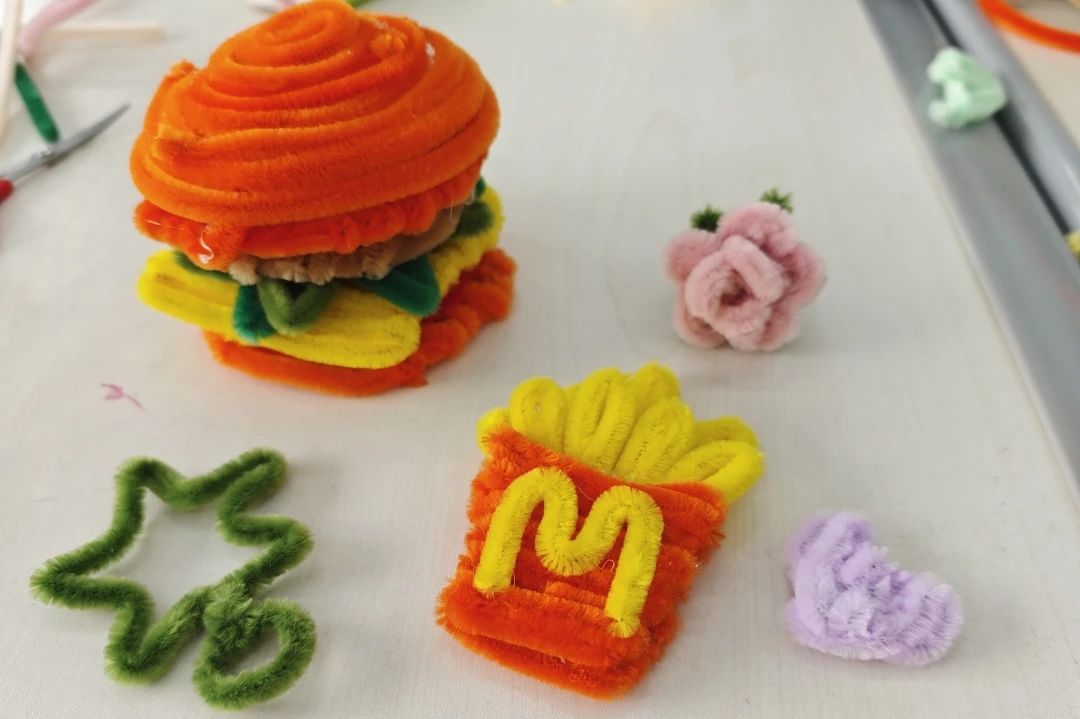 活動(dòng)組織者為同學(xué)們準(zhǔn)備了材質(zhì)各異、色彩多元的扭扭棒,同時(shí)為了充分滿足同學(xué)們的自由創(chuàng)作需求,還采購(gòu)了包裝紙、花架、小眼睛和鉆石貼紙等材料。制作過程中,同學(xué)們各取所需、專心致志地創(chuàng)作屬于自己獨(dú)一無二的扭扭棒作品。有的同學(xué)由于制作得較好,被大家自發(fā)地當(dāng)成了“小老師”,同學(xué)們圍坐在一起交流討論、互相幫助,以自己當(dāng)下的狀態(tài)和情緒為依托,伴隨著平和放松的輕音樂,共同“扭出”自己想象中的作品。